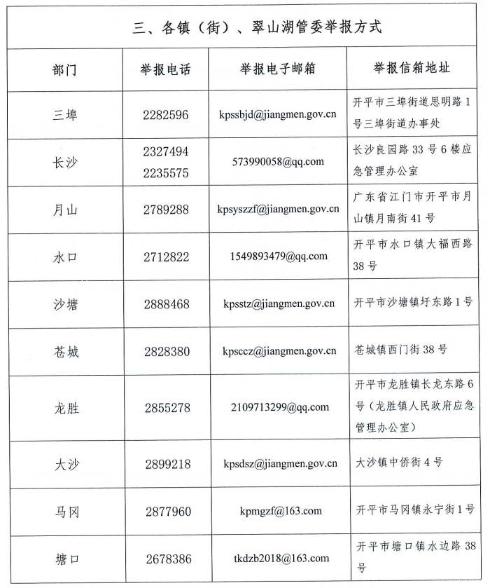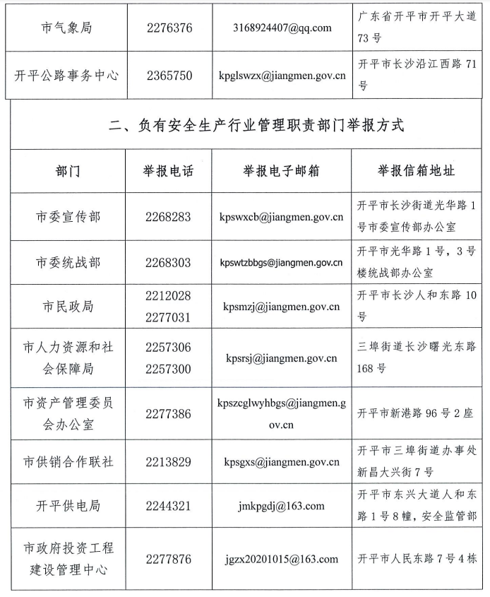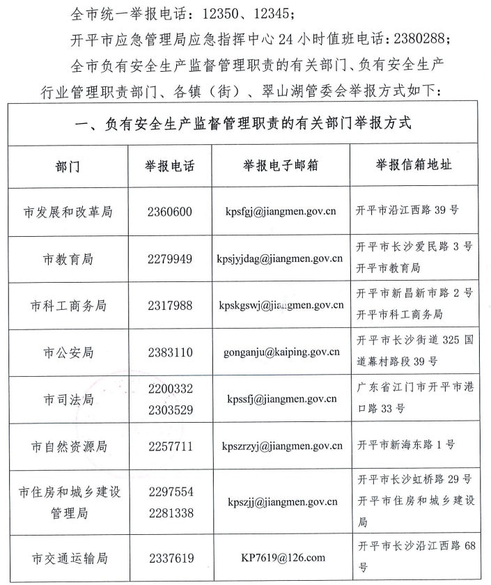 关于公布安全生产违法行为和安全生产事故举报途径的公告