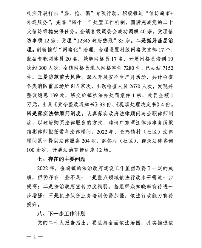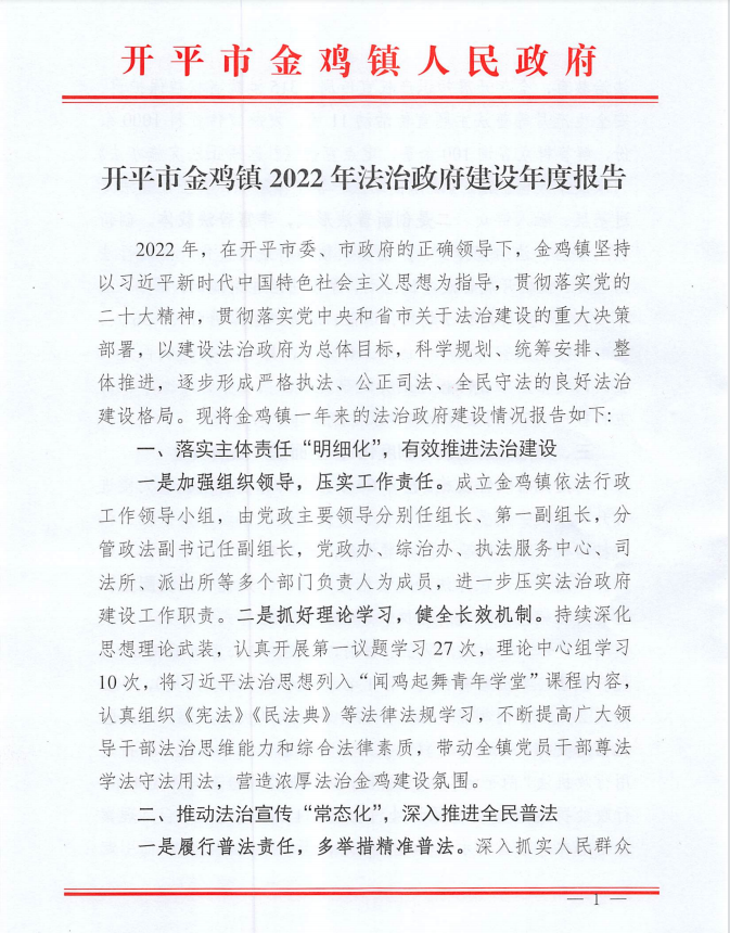 海棠直播 金鸡镇2022年法治政府建设年度报告