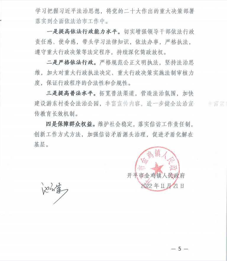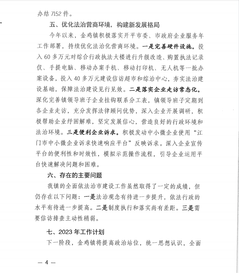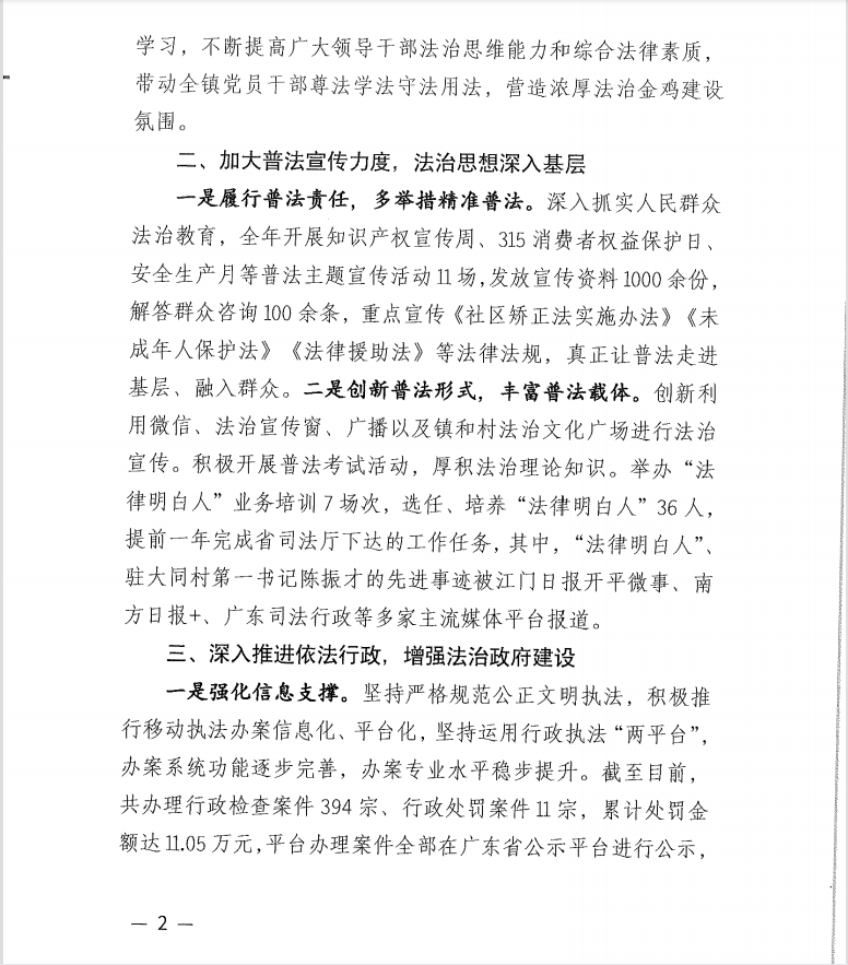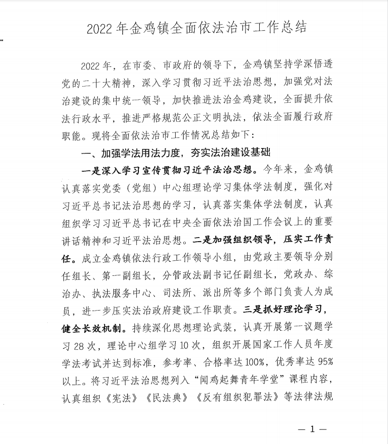 2022年金鸡镇全面依法治市工作总结