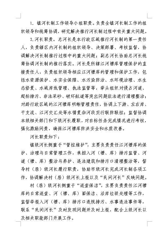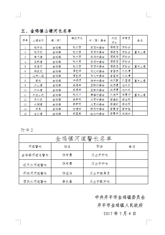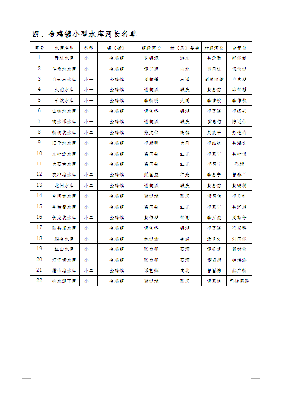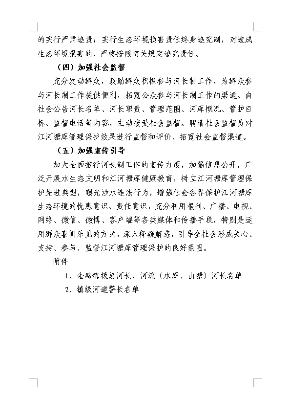 关于印发《金鸡镇全面推行河长制实施方案》的通知
