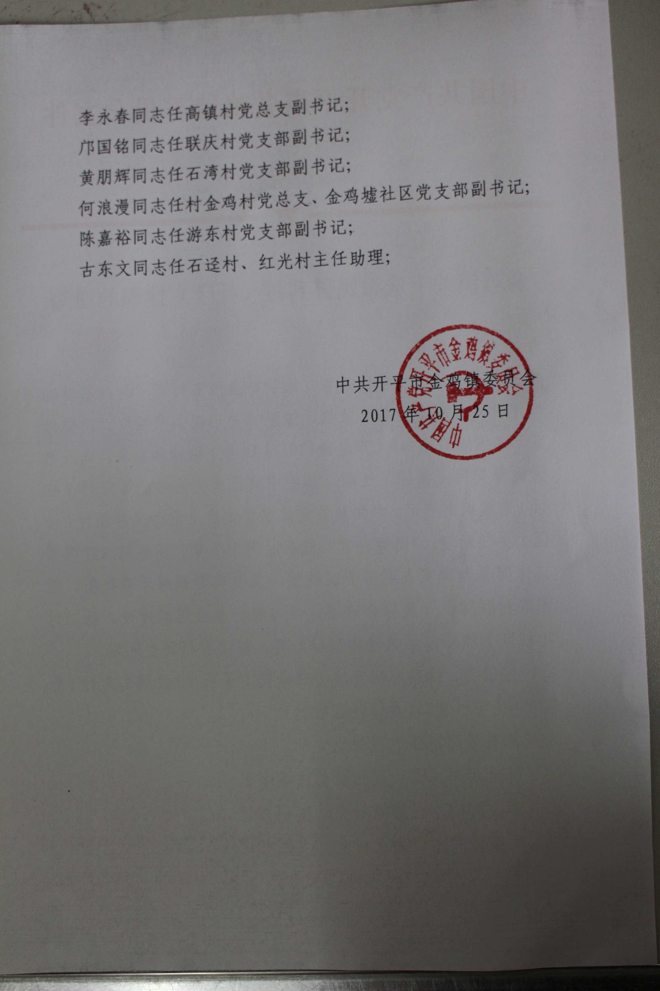 [人事任免]金鸡镇关于选派民警到村(社区)挂职的通知