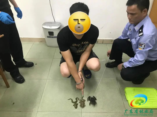 近年来,广东省生态环境质量持续向好,多种珍稀濒危动物纷纷现身。不少市民朋友在野外,甚至家门口都与野生动物们“打过交道”。遇到野生动物,不少市民第一时间向林业部门或公安机关报告求助。然而,也有市民在跟它们“打交道”的过程中翻了车,一不小心,“牢底坐穿”。 八旬老人张网捕鸟,结果自己被执法人员带走 近日,广东省茂名市电白区检察院在林头镇某村委会举行不起诉案件公开宣告会,被不起诉人蔡某现身说法,真诚悔罪。 原来,此前,蔡某见附近山头上的鸟多了,于是购买了2张捕鸟用的细网布置在附近的山头,成功网到了5只鸟。就在蔡某拿着“战利品”到附近市场兜售时,执法人员找上了蔡某。原来,蔡某捕捉的5只鸟属国家“三有”野生保护动物,不能非法捕捉和贩卖。 随后,蔡某被执法人员带走进行进一步调查,并因涉嫌非法狩猎罪被审查起诉。 男子徒手抓蛙带回家,结果被刑事拘留 3月29日晚,佛山一男子胡某在某鱼塘的水沟里发现了3只蛙,随后徒手抓住,用袋子装好后带回出租屋饲养。 4月30日,佛山市公安局南海分局西樵派出所民警于村居开展日常走访检查工作时,发现了该男子和他藏起来的3只蛙。经鉴定,这3只蛙为国家二级重点保护动物,更为特别的是,它们是截至目前唯一一种被列入国家重点保护野生动物名录的蛙类。 目前,胡某因涉嫌非法捕猎珍贵、濒危野生动物,被公安机关依法刑事拘留,案件仍在进一步审理中。 嫌疑人胡某指认他抓住的三只蛙 男子网购蜥蜴偷养在猪场,结果被警方抓获 4月23日,江门海棠直播