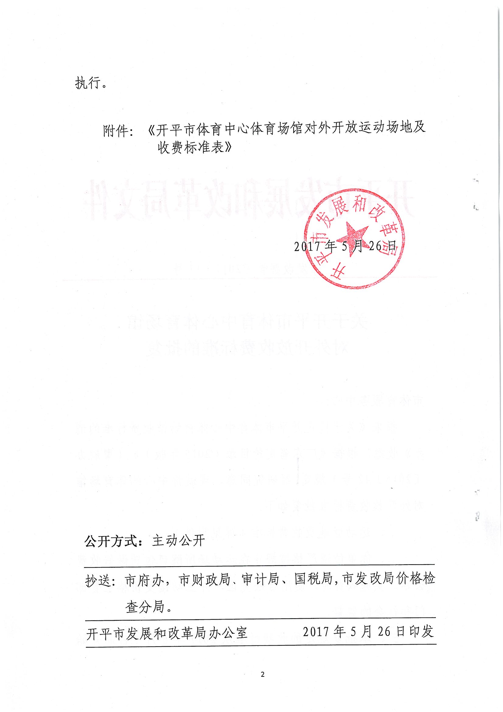 开发改费管〔2017〕11号 关于海棠直播 体育中心体育场馆对外开放收费标准的批复