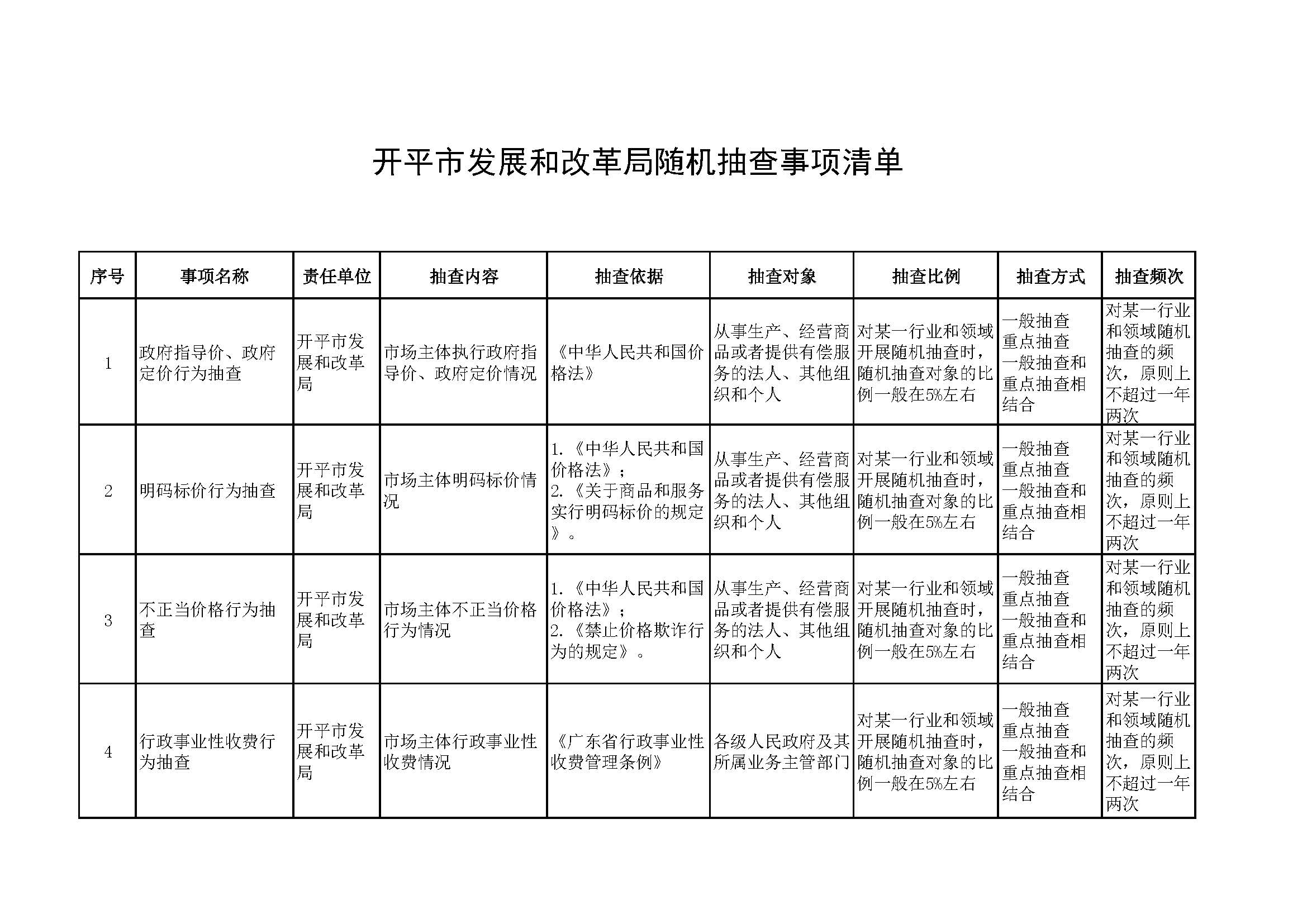 海棠直播 发展和改革局随机抽查事项清单