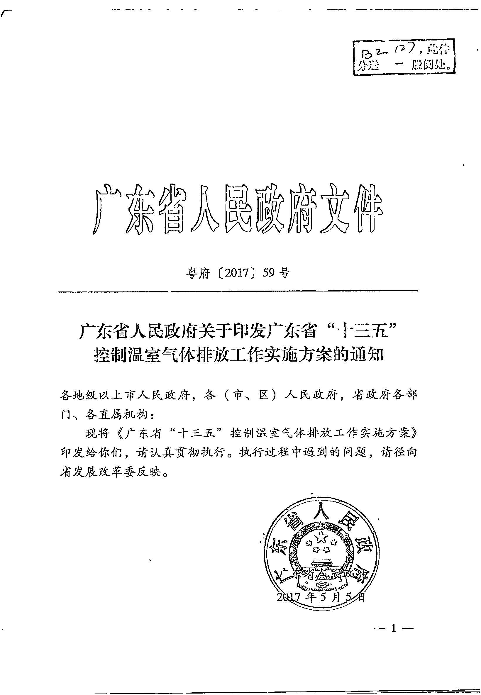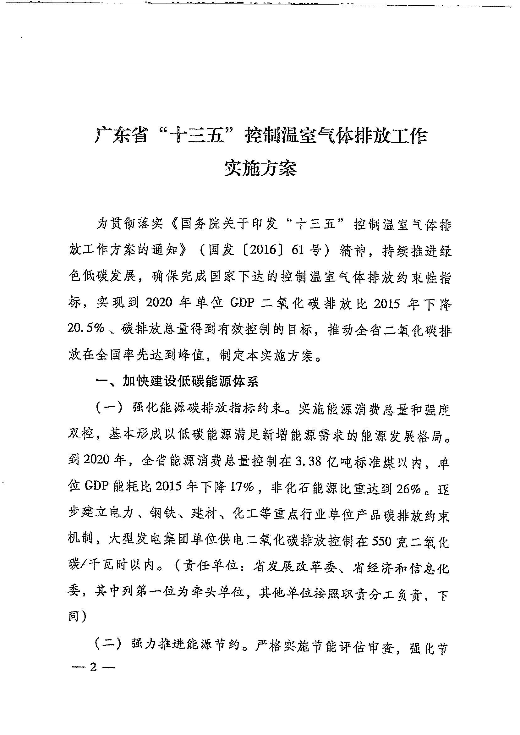 关于印发广东省“十三五”控制温室气体排放工作实施方案的通知