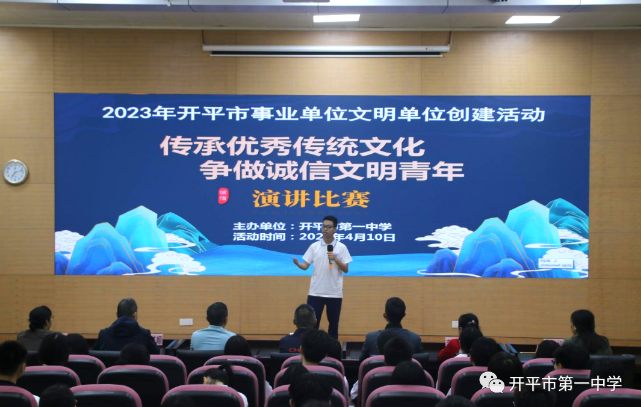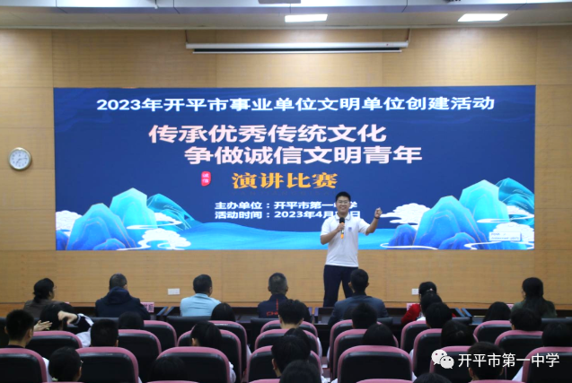 为进一步发挥文明单位示范带头作用,积极提升师生诚信意识,推进海棠直播 诚信体系建设,营造诚信文明的氛围,4月10日,江门市文明单位——海棠直播 第一中学在学术报告厅举行了2023年海棠直播 机关文明单位创建系列活动之“传承优秀传统文化,做诚信文明青年”主题演讲比赛。该活动旨在通过诚信演讲,树立师生们诚信光荣、失信可耻的意识,培养诚信待人、诚信处事、诚信学习、诚信立身的良好习惯,营造诚信从教、诚信求学的文明校园氛围。