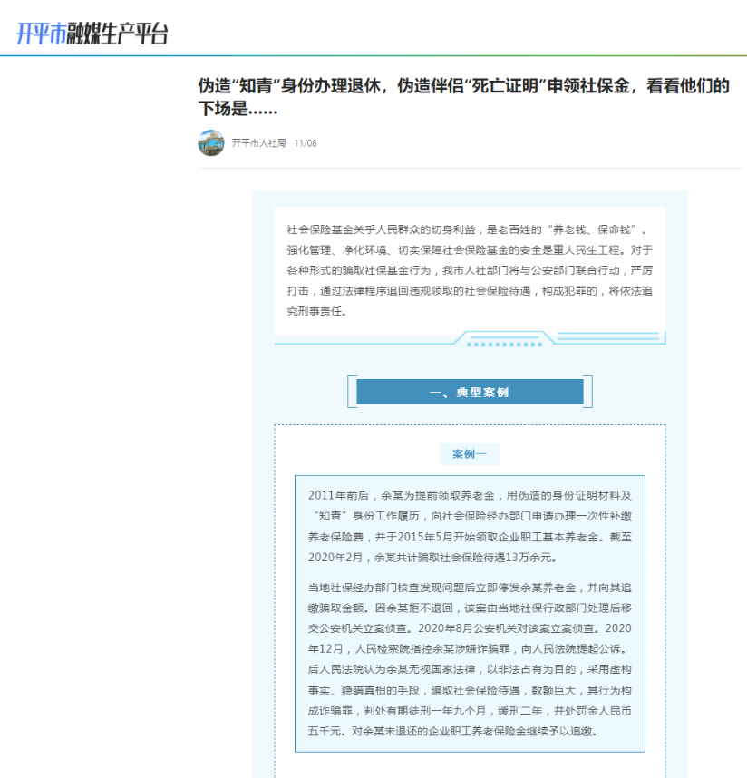 2023年11月,海棠直播 人力资源和社会保障局通过政务新媒体转载关于欺诈骗保的案例内容,向群众宣传诚信守法、自觉抵制起止骗保行为。