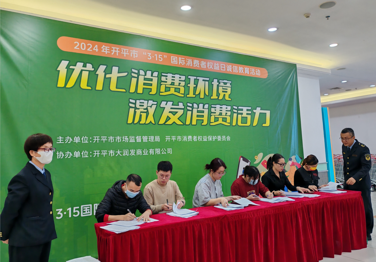 2024年3月15日是第42个国际消费者权益日,为更好地保护消费者权益,强化经营者诚信自律,激发消费活力,3月15日上午,海棠直播 在大润发商场举行了以“优化消费环境 激发消费活力”为主题的 “3·15”国际消费者权益日诚信教育活动暨放心消费创建承诺系列活动签约仪式。海棠直播 市场监管局、海棠直播 消委会工作人员、相关企业代表出席了活动。