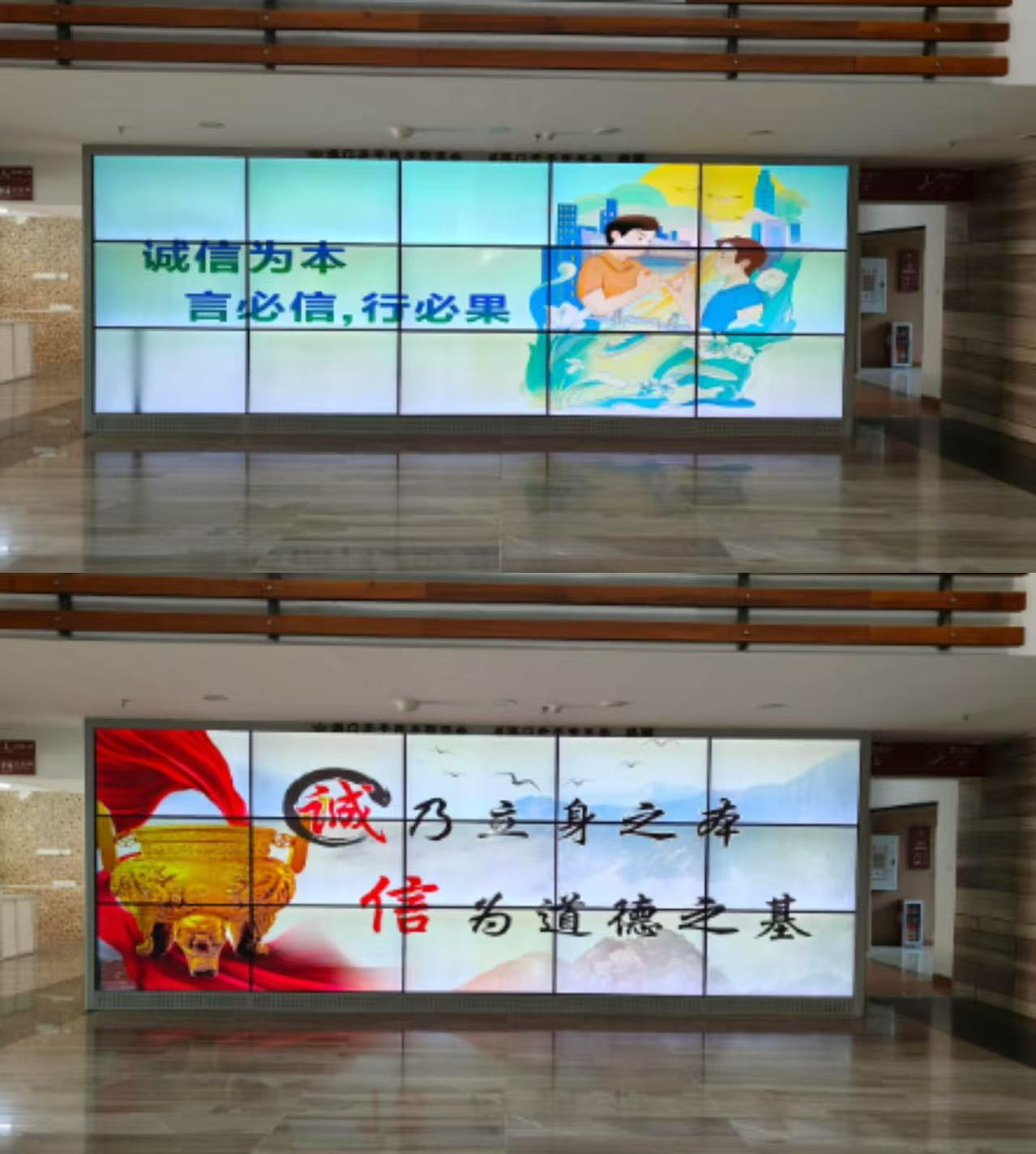 博物馆利用LED大屏幕滚动播放信用宣传标语,渲染宣传氛围,海棠直播
