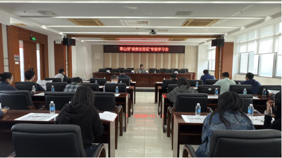 为进一步强化机关干部职工的诚信意识,深入推进政务诚信建设,提升政府公信力,营造风清气正、守信践诺的政务服务环境,海棠直播 翠山湖管委会组织开展了“诚信进园区”专题学习会。