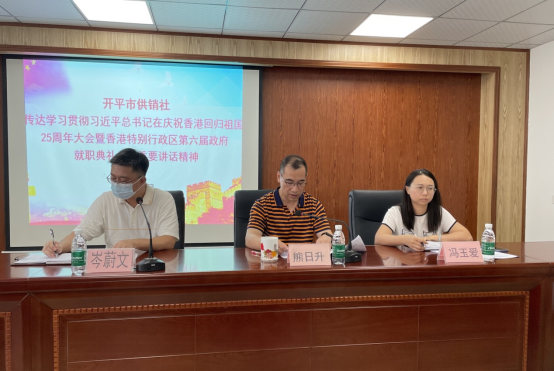 供销社召开党组(扩大)会议,传达学习贯彻习近平总书记在庆祝香港回归祖国25周年大会暨香港特别行政区第六届政府就职典礼上的重要讲话精神,以及省、江门、开平有关会议精神,研究部署我社贯彻落实意见。市社党组书记、主任熊日升主持并讲话,市社全体干部职工、下属单位负责人参加了会议。 会议指出,习近平总书记的重要讲话,高度评价25年来“一国两制”实践在香港取得举世公认的成功,全面总结“一国两制”在香港的丰富实践给我们留下的宝贵经验、深刻启示,对香港特别行政区新一届政府和社会各界人士提出4点希望,蕴含着对香港发展的深邃思考、体现着对香港同胞的深切关怀,为香港开创新局面、实现新飞跃指明了努力方向,注入了坚定信心和强大力量,对供销工作具有重要指导意义。 会议强调,要迅速行动、精心组织、周密安排,做好宣传学习,推动习近平总书记重要讲话精神在我社落地生根、开花结果,切实把学习成果转化为真抓实干的具体行动。一要提高政治站位,切实把思想和行动统一到总书记、党中央的决策部署上来。深刻领会总书记重要讲话精神,抓住粤港澳大湾区建设等重大历史机遇,胸怀“国之大者”,坚定捍卫“两个确立”、坚决做到“两个维护”,扎实抓好疫情防控、供销综合改革、服务“三农”的各项工作,以优异成绩迎接党的二十大胜利召开。二要从严从紧,科学精准做好疫情防控工作。坚持“外防输入、内防反弹”总策略和“动态清零”总方针,坚决防止麻痹思想、厌战情绪、松劲心态,巩固好来之不易的防控成果。按照我市疫情防控的工作部署,强化疫情防控常态化管理工作,加强对办公场所防疫管理,守好自己的门、管好自己的人,不断提升科学防控、精准防控水平。加大宣传力度,营造防控良好社会氛围。强化全局意识、展示供销责任担当,全力以赴保障人民群众生命安全和身体健康。三要抢抓机遇,深化与港澳地区合作交流。紧紧抓住湾区发展这一机遇,围绕开平农产品资源及农业产业发展优势,积极争取各方力量支持,加快推进与省供销集团公司共建粤港澳大湾区(江门开平)优质农产品供应及出口基地建设,为我市乃至珠江西岸的农产品输出提供了强有力的平台支撑。四要毫不松懈,严密防范化解各类风险隐患。始终以“时时放心不下”的责任感,抓实抓细安全生产各项工作,全力确保人民群众生命财产安全。扎实做好供销系统意识形态领域各项工作,坚决守好意识形态阵地,严格落实意识形态工作责任制,筑牢意识形态安全“护城河”和“防火墙”。