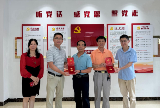 供销社开展慰问“光荣在党50年”老党员活动,市社党组成员、副主任岑蔚文同志带队慰问市社退休老党员杨源想、黄达明和甄耀辉同志,向他们颁发“光荣在党50年”纪念章,并致以节日崇高敬意和诚挚问候。 岑蔚文同志代表市社党组向老党员送上最深切的关怀,与老党员亲切交流,问候其身体情况和家庭近况等,感谢老党员为供销事业发展作出的突出贡献,期待老同志一如既往地关心、支持供销工作,多提宝贵意见建议。 老党员们接过纪念章后,纷纷感谢党组织的关怀和给予的这份荣誉,并表示作为一名老党员,将不忘初心、牢记使命,听党话、感党恩、跟党走,继续为党和人民发挥余热。 岑蔚文同志强调,全社在职党员要以老党员为榜样,继承光荣传统,发扬优良作风,努力在新时代新征程中奋勇争先、建功立业。要时刻把老党员的冷暖挂在心上,解决他们的实际困难,做到政治上多尊重、思想上多关心、生活上多照顾、精神上多关怀,进一步增强老党员的荣誉感、归属感和使命感,不断提升他们的获得感和幸福感。