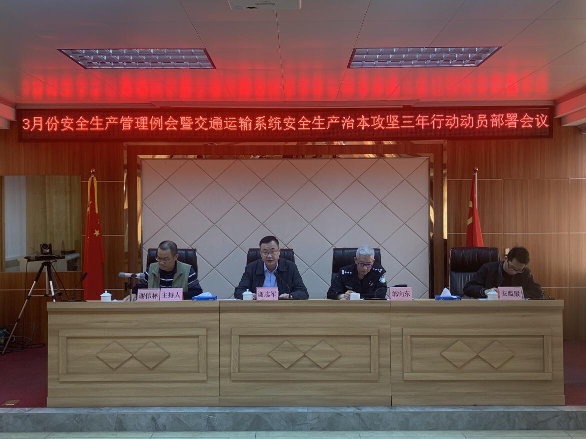 为落实我市交通运输系统安全生产治本攻坚三年行动工作,统筹部署推进我市交通运输行业道路交通安全挂牌整治工作、安全生产、消防安全、重大事故隐患排查整治和重大风险防范化解行动,确保全市交通运输行业安全生产形势持续稳定,3月20日下午,我局召开3月份安全生产管理例会暨交通运输系统安全生产治本攻坚三年行动工作动员部署会议。市交通运输局谢志军副局长,谢伟林三级主办,责任股室、执法大队、直属单位和市交警大队以及各客运企业(含网约车)、客运站、城市公交企业、出租车企业、危险货物运输企业、10辆车以上的货运企业、水上运输企业和港口码头企业等有关负责人约50人参会。