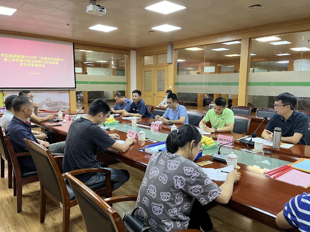 6月14日,市交通运输局组织召开2024年“交通企业服务年”第二季度港口码头检查工作总结暨安全专家培训会,我市9家港口码头企业参加了会议。