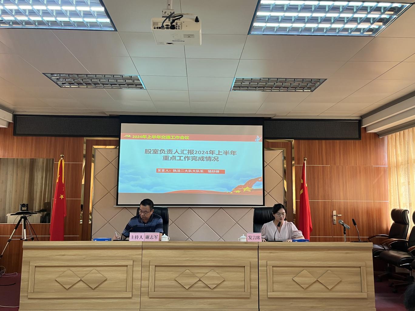 会上,首先由股室负责人代表逐一汇报2024年上半年重点工作完成情况。综合规划股股长黎明芳、办公室负责人龚闻青、基建管理股负责人梁伟东和执法二大队大队长骆妙婵4位同志从各自股室(大队)的实际工作出发,重点汇报了今年上半年重点工作的完成情况、存在问题以及下一步工作计划。