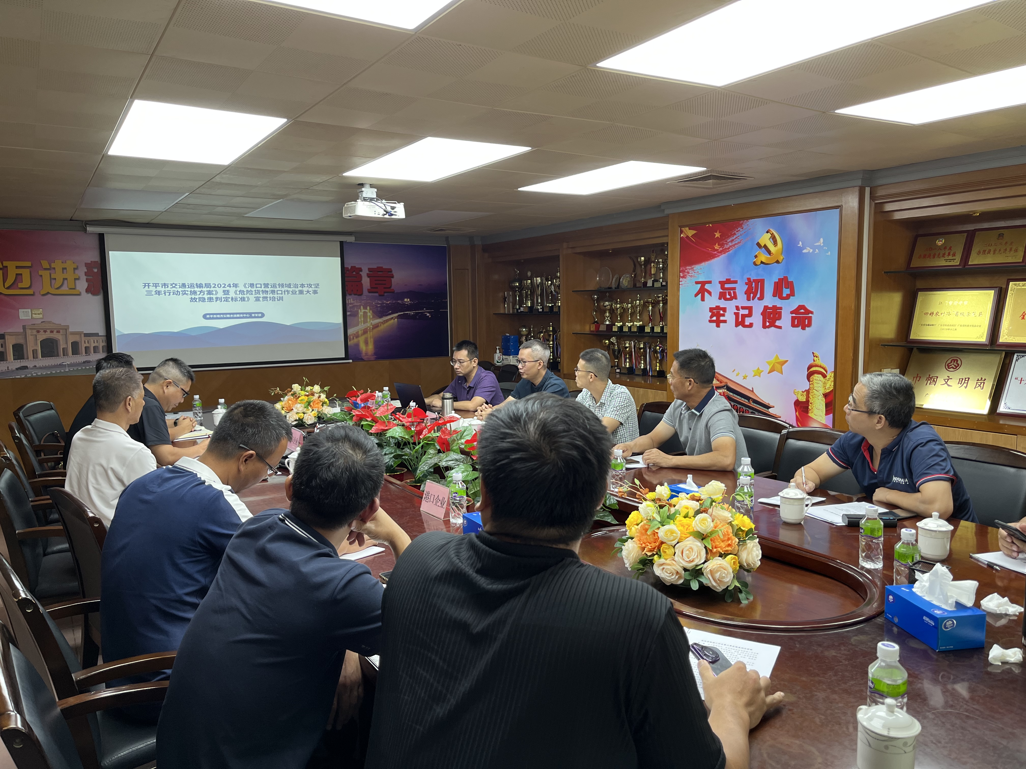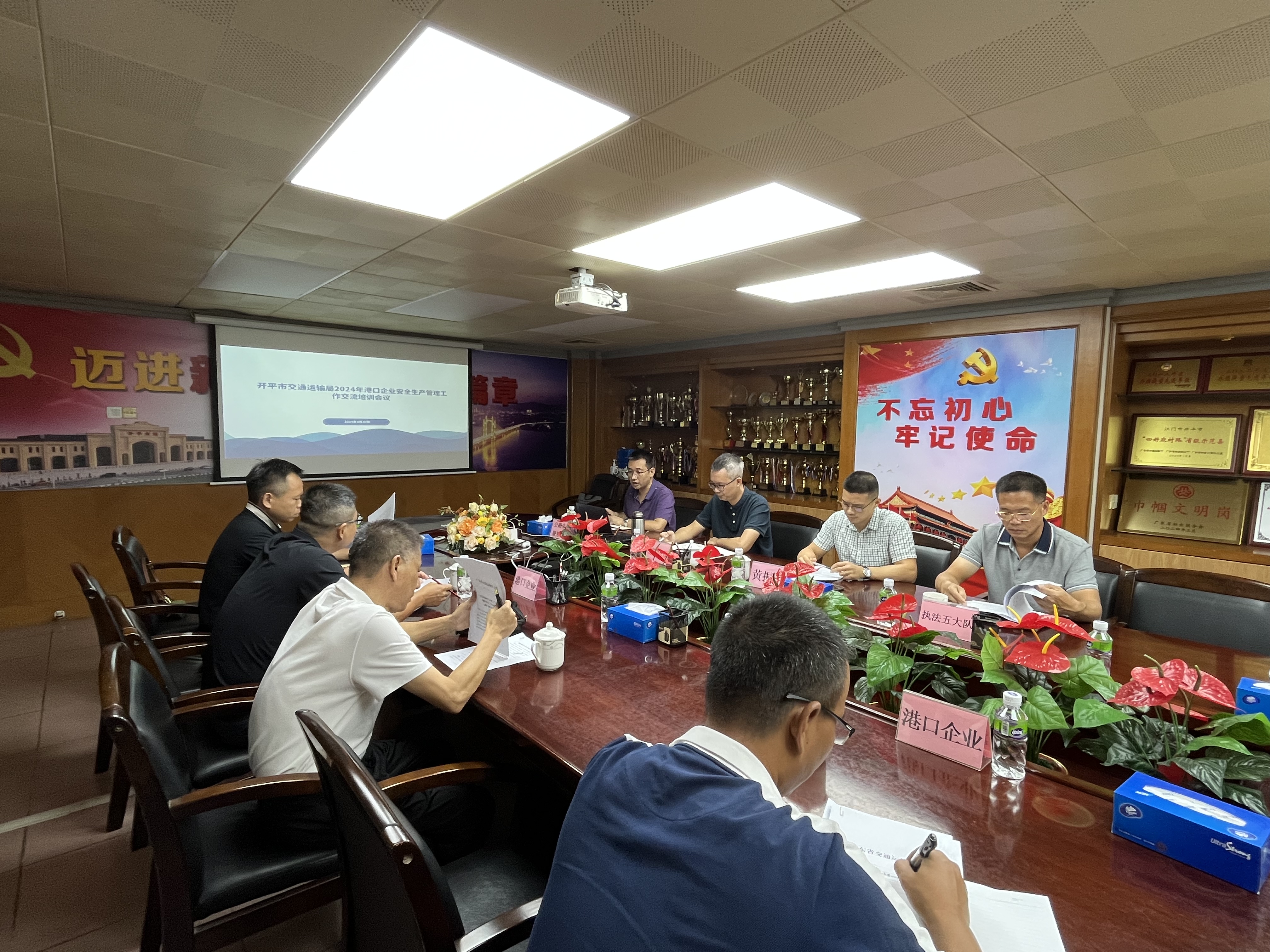 培训会上,通报和学习了《江门市交通运输局关于港口企业安全生产管理工作交流培训考试情况的通报》《江门市交通运输局转发关于进一步加强港口船舶水污染物治理工作的通知》《港口航道领域防汛防台风安全生产风险隐患排查指南(试行)》和《港口经营管理规定》等法律法规和政策文件。