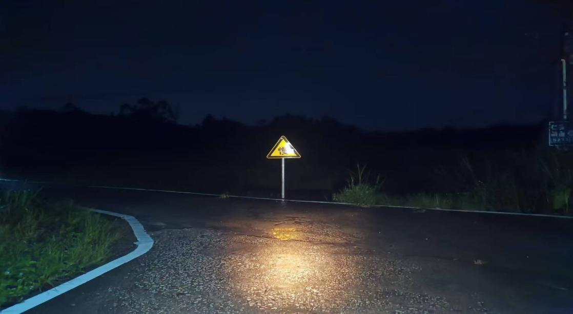 (增设反光型标线+慢行警示牌夜间效果)