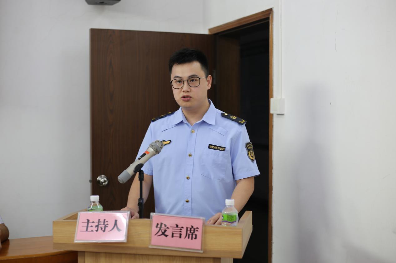 (执法刀锋队代表张杰彬作表态发言)