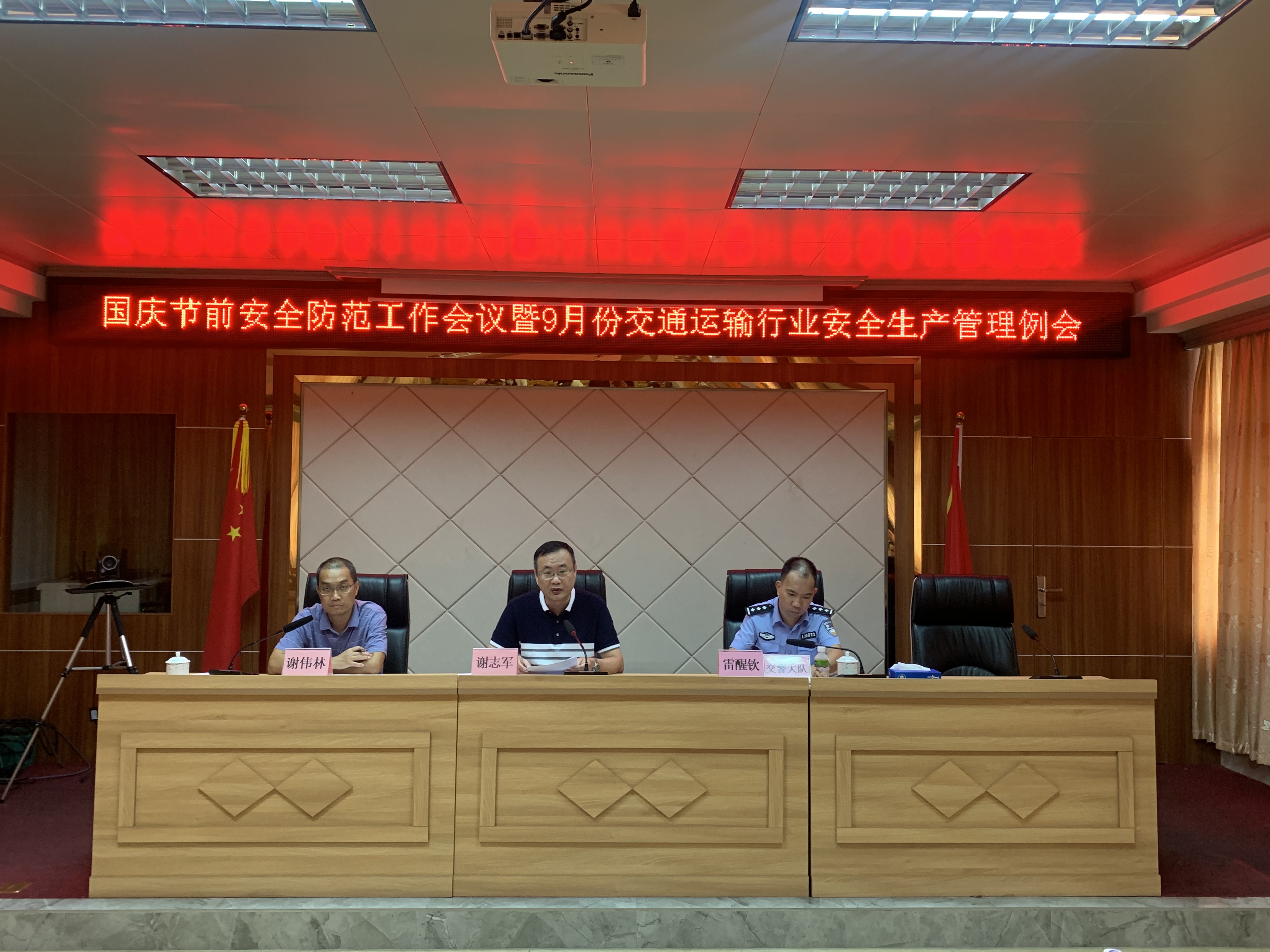 为进一步统筹推进我市交通运输行业国庆期间安全生产和消防安全工作,确保全市交通运输行业安全生产形势持续稳定,市交通运输局于9月20日召开国庆节前安全防范工作会议暨9月份交通运输行业安全生产管理例会。市交通运输局谢志军副局长、谢伟林三级主办,责任股室、执法大队、直属单位和市交警大队负责同志以及各客运企业(含网约车)、客运站、城市公交企业、出租车企业、危险货物运输企业、10辆车以上的货运企业、在建交通工程项目、水上运输企业和港口码头企业等有关负责人共52人参会。