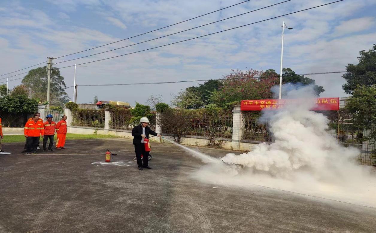 为有效防范养护道班场所火灾事故发生,提升养护道班场所火灾防控能力和消防安全意识,12月3日,市地方公路水运服务中心在塘口道班开展了2024年下半年消防安全知识培训和消防安全演练活动。市交通运输局党组成员、副局长杨育占,市地方公路水运服务中心主任李军德,中心养护工程组、安全监督组负责人以及各养护道班班长等16位同志参加。