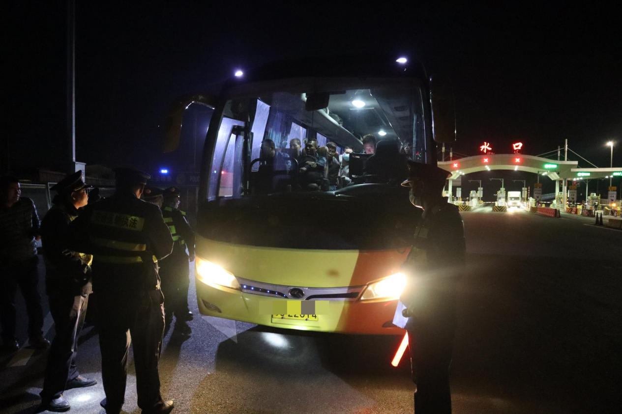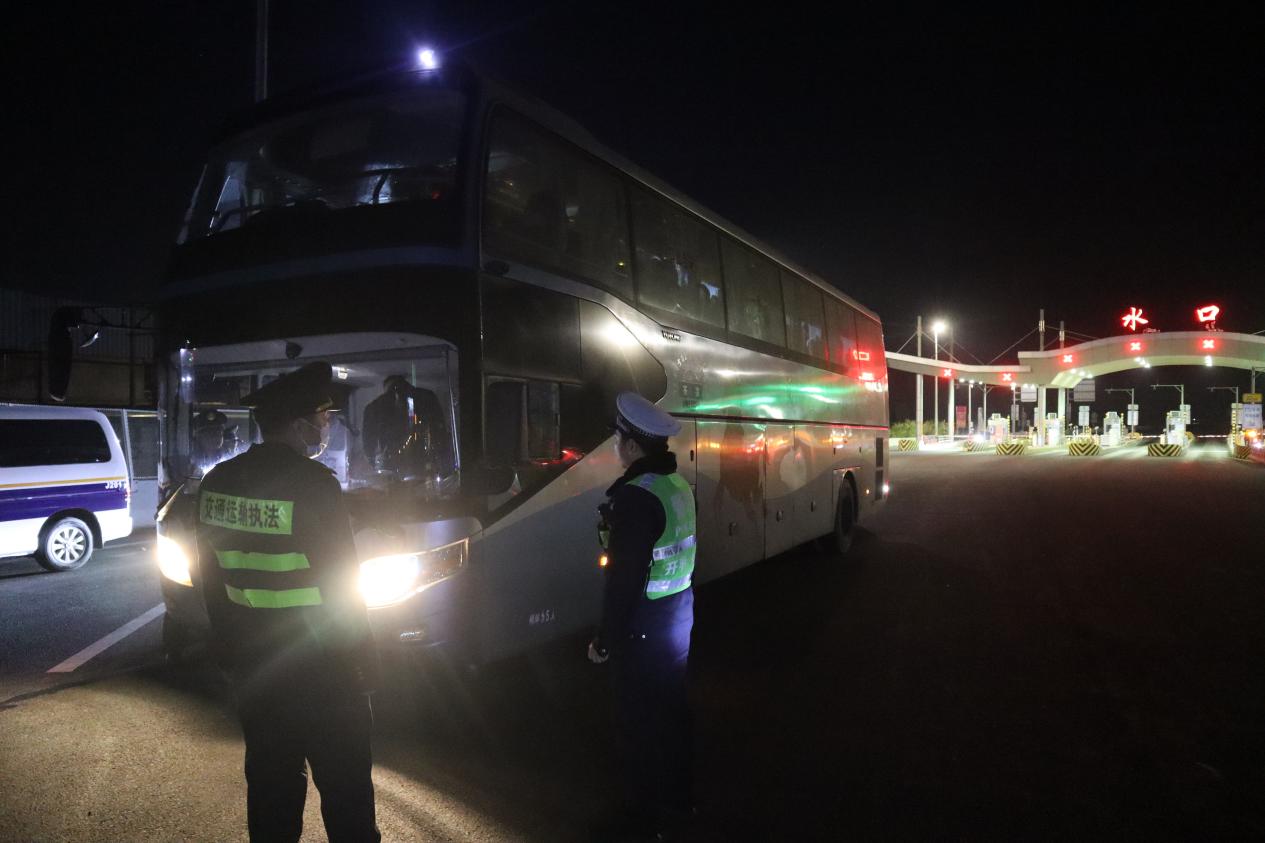 1月11日晚,海棠直播 交通运输局执法刀锋队联合公安交警部门,根据省和江门市下发的高风险车辆线索,摸清辖区内有关高风险车辆情况,并依托重点车辆稽查布控系统,在开阳高速水口收费站出口路段开展夜间执法,实施严密的路面布控。