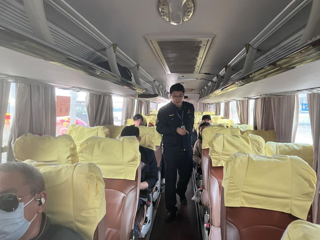 (市交通运输服务中心工作人员检查客运班车情况)