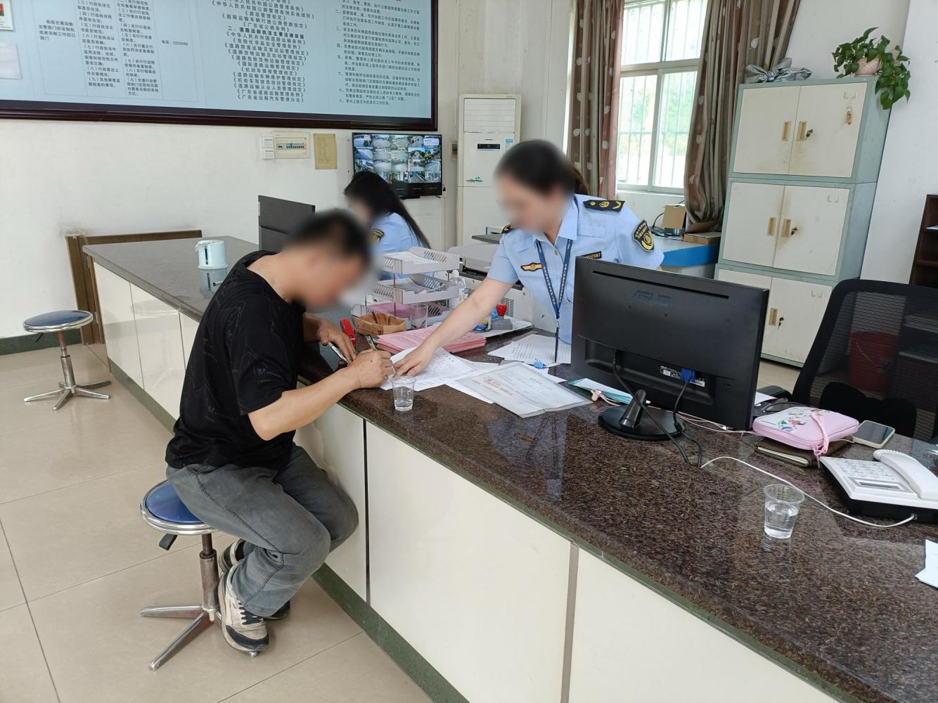 4月16日,海棠直播 交通运输局执法刀锋队联合市公安局交通警察大队执法人员对粤H0****车辆进行重点关注和科技布控,于当天11时左右在海棠直播 水口镇路段将该车拦截,并引导至百合镇超限检测点。经调查,粤H0****货运车辆所有人为某物流有限公司。该车辆跨市运载货物,有收取运费的行为,但车辆驾驶员不能现场提供有效的道路运输经营许可和车辆道路运输证,存在未按规定取得道路货物运输经营许可,擅自从事道路普通货物运输经营的违法行为。目前,执法人员已对该违法行为依法处理,并对涉事司机和车主进行普法教育。