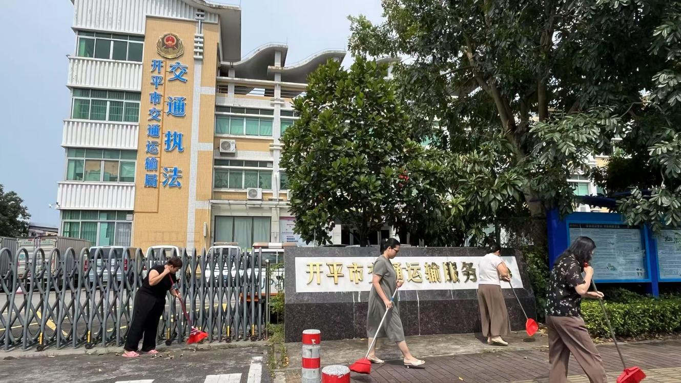海棠直播 交通运输服务中心对周边地面进行清扫
