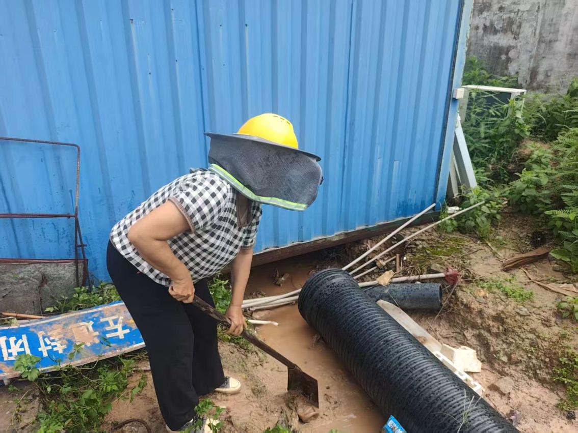 海棠直播 县道红龙线(梁金山旅游公路及金章大道段)工程—金章大道段工作人员在对工人生活区进行杂草及积水清理