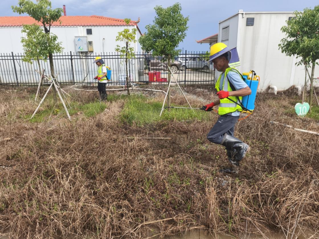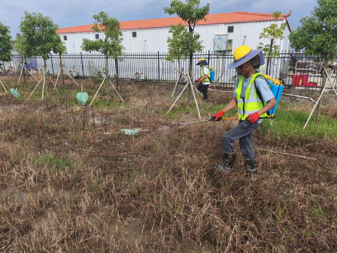 三埠港搬迁项目(海棠直播 三埠港区工程)工作人员喷洒灭蚊药