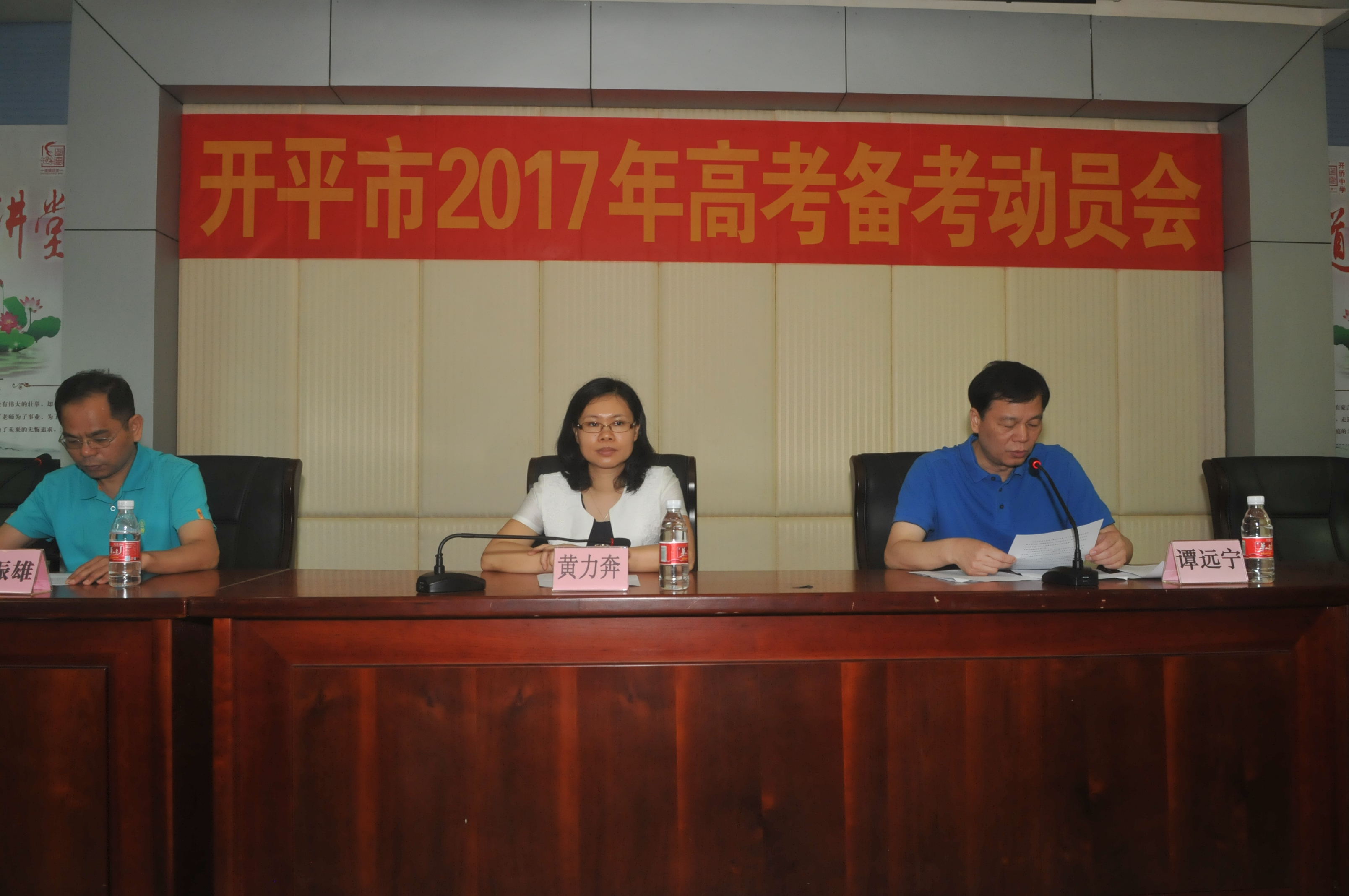 2016年10月28日上午,海棠直播 教育局在开侨中学举行了2017年高考备考动员会暨专题辅导报告会。海棠直播 副市长黄力奔,海棠直播 教育局全体党委成员、教研室中学股全体教研员,吴汉良理工学校和海棠直播 机电学校校长、教导主任、高三级长,全市普通高中学校2017届高三级代表等近200人参加了会议。会议由海棠直播 教育局党委委员、副局长殷振雄主持。本次大会总结了我市2016年高考取得的优异成绩和宝贵经验,并对2017届高三备考工作进行了全面的部署和动员。