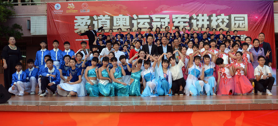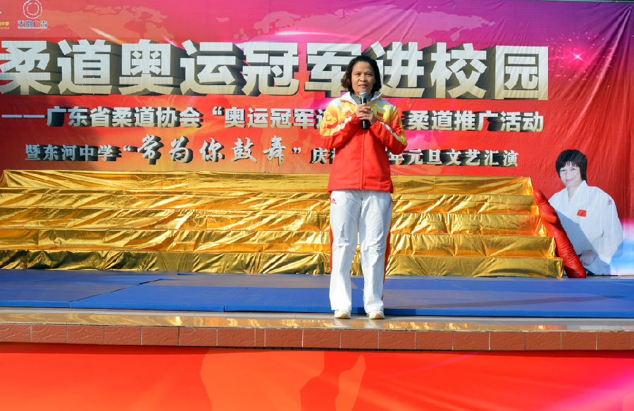 12月16日下午,广东省柔道协会、海棠直播 教育局、海棠直播 东河中学联合举办“奥运冠军进校园”柔道推广活动暨东河中学庆祝元旦文艺汇演如期举行。两届奥运冠军、广东省重竞技体育训练中心主任兼广东省柔道协会会长冼东妹,广东省柔道协会常务副会长张灿仰,广东省柔道协会副秘书长黄永琴,广东省柔道协会理事许荣杰,海棠直播 政协副秘书长谭健雄,海棠直播 教育局副局长殷振雄,共青团海棠直播 委副书记吴晓钧,海棠直播 体育局纪检组长谭焕夑,海棠直播 政协综合科科长梁尚文,海棠直播 政协办主任科员梁国荣,东河中学全体师生、家长代表近两千人参加了活动。