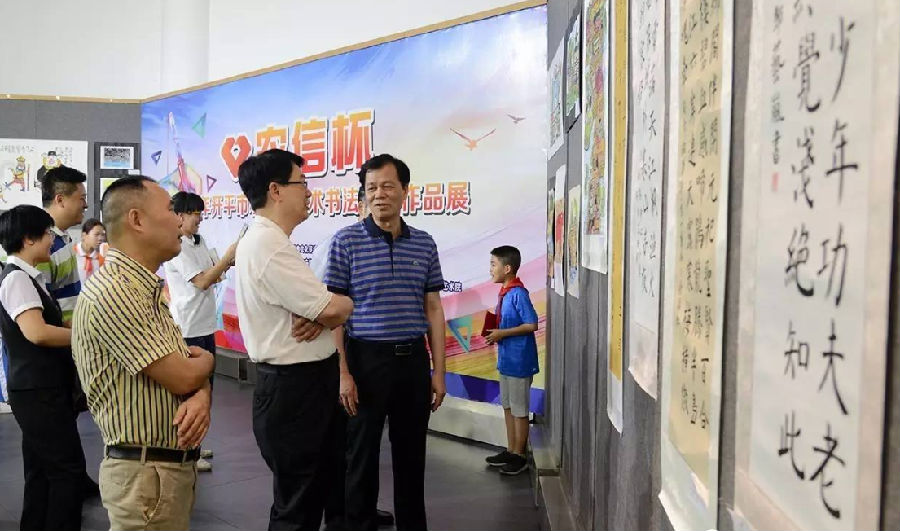 5月31日下午,由海棠直播 教育局、海棠直播 文联、海棠直播 文化促进会联合主办的“农信杯”2017年海棠直播 小学生美术书法展览开幕典礼在海棠直播 谭逢敬艺术楼隆重举行。市政府副市长黄力奔、市文化促进会会长谭思哲、市教育局局长谭远宁以及相关部门领导、支持单位、相关学校老师、学生、家长等300多人出席了大会。