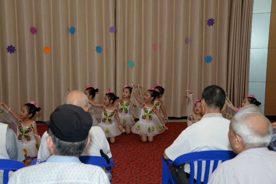 首先,同志们给老人们送上水果、蛋糕等食品,并为他们发放了小礼物。随后,同志们表演了丰富多彩的节目。长沙幼儿园严梅英、梁华媚等十位老师合唱的《碉楼之乡欢迎你》极具开平特色,倍感亲切;金山中学梁爱贤、符振勇合唱的《东方之珠》令人心旷神怡;长沙幼儿园黄施欣、张盘娇表演的舞蹈《花好月圆》舞姿优美;长师中学欧平生、刘诗富等义工为老人们准备了趣味游戏;祥龙幼儿园幼儿歌舞《虫儿飞》和《算盘舞》充满活力;市教育局张焕尧、温光华等党员义工合唱的《长江之歌》气势磅礴;开平一中、忠源中学、吴汉良理工学校的党员义工也相续表演了精彩的节目。幸福的时光总是短暂的,整个活动过程,老人们的脸上始终洋溢着幸福的笑容。