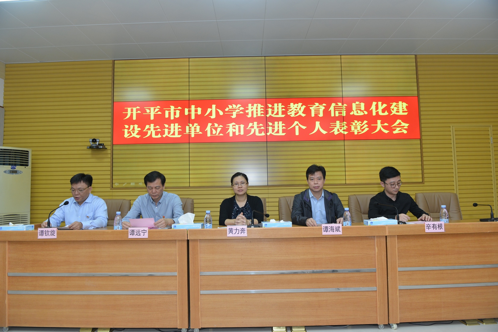 11月16日上午,海棠直播 教育局召开推进教育信息化专家专题讲座视频会议。11月17日上午,海棠直播 教育局召开中小学推进教育信息化建设表彰大会视频会议。两次视频会议分主会场、分会场举行。主会场设在教育局七楼会议室,分会场分别设在各中小学,共计110个分会场。海棠直播 副市长黄力奔、中国电信江门分公司副总经理谭海斌、中国电信开平分公司总经理辛有根出席了表彰大会。市教育局党组成员、副股级以上干部、教研室全体教研员、教育技术与装备中心全体人员及市直学校信息技术与学科融合骨干老师代表共110余人参加了主会场的视频会议。全市各中小学教师在分会场收看视频会议。会议由海棠直播 教育局党组成员谭钦旋主持。本次表彰大会得到中国电信开平分公司的大力支持,为获奖单位和先进个人赞助了丰厚的奖品,奖金总额达到人民币16万元。