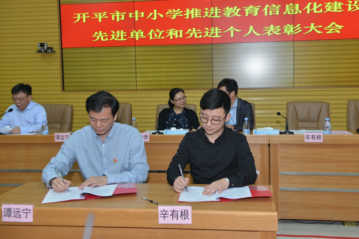 金山中学校长郑娟馥、开侨中学教师梁伟锋分别作为教育信息化建设先进单位和先进个人代表作了经验介绍。大会向开侨中学、开平一中、金山中学、忠源纪念中学、东河中学、谭宏帙小学、庆扬中学、春华小学、月山中心小学(新校区)、开平开放大学等10所学校颁发了“海棠直播 推进教育信息化建设先进单位”奖,并表彰了300位推进教育信息化建设的先进个人。市教育局与中国电信开平分公司还签订了“互联网+教育”信息化合作协议,进一步推进海棠直播 教育信息化建设。