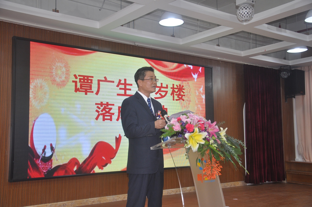 谭瑞彰先生代表谭广生先生致送谭思哲先生赠言——“谭氏翘楚传乡情,海外游子圆夙愿。”以此表达自己对谭思哲先生的感激之情。谭广生先生还特意在美国录制了视频为落成庆典致辞,表达了这位百岁老人的喜悦之情。开侨中学老师自编自演散文长诗《中国梦,百岁不老》,表达了对谭广生这位百岁老华侨的崇敬之情!