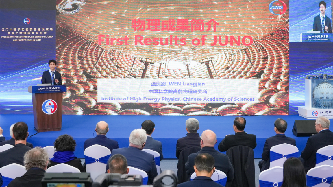 中国科学院高能物理研究所副所长、江门中微子实验合作组物理分析负责人温良剑报告江门中微子实验的首个物理成果。