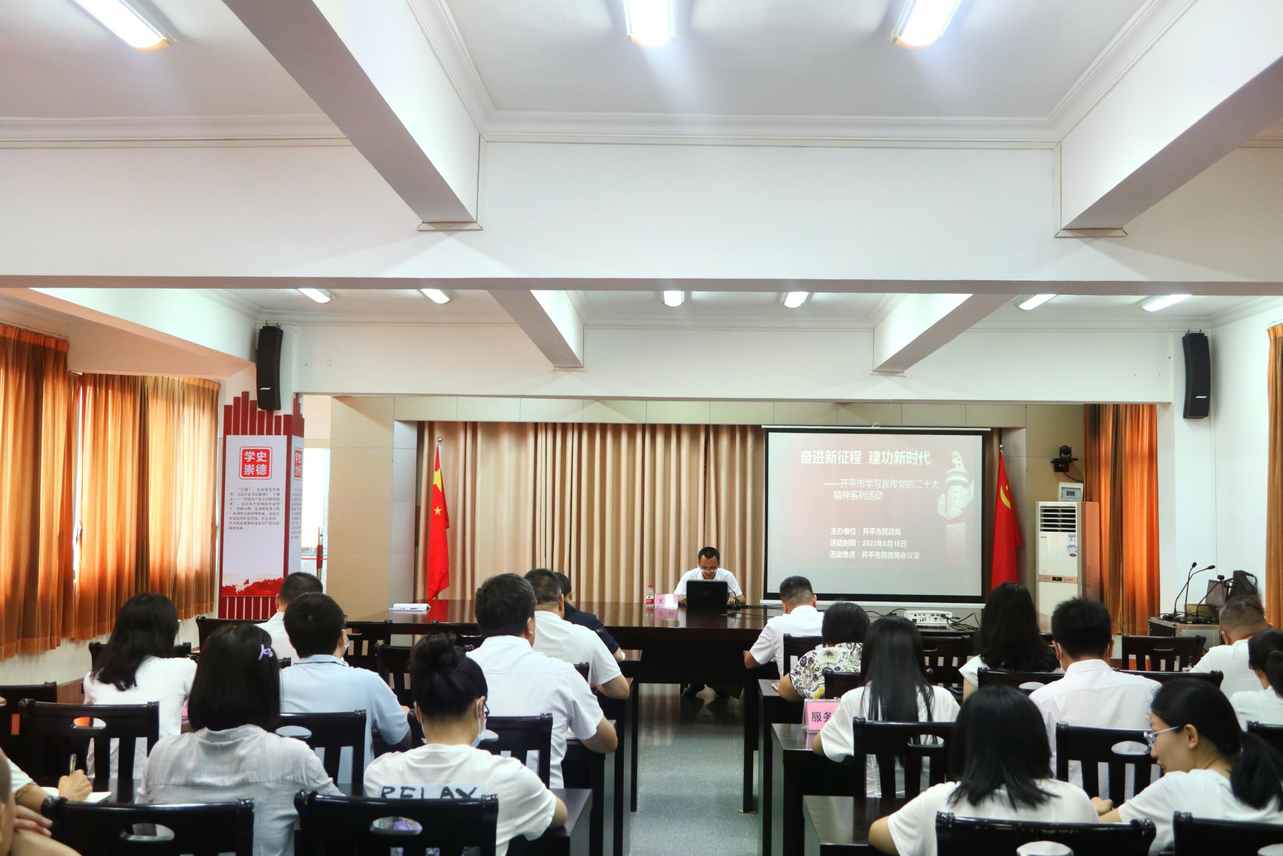 为扎实做好党的二十大精神学习宣传贯彻工作,8月18日上午,海棠直播 民政局在五楼会议室宣讲党的二十大精神。市民政局全体党员干部职工、各事业单位负责人参加会议。