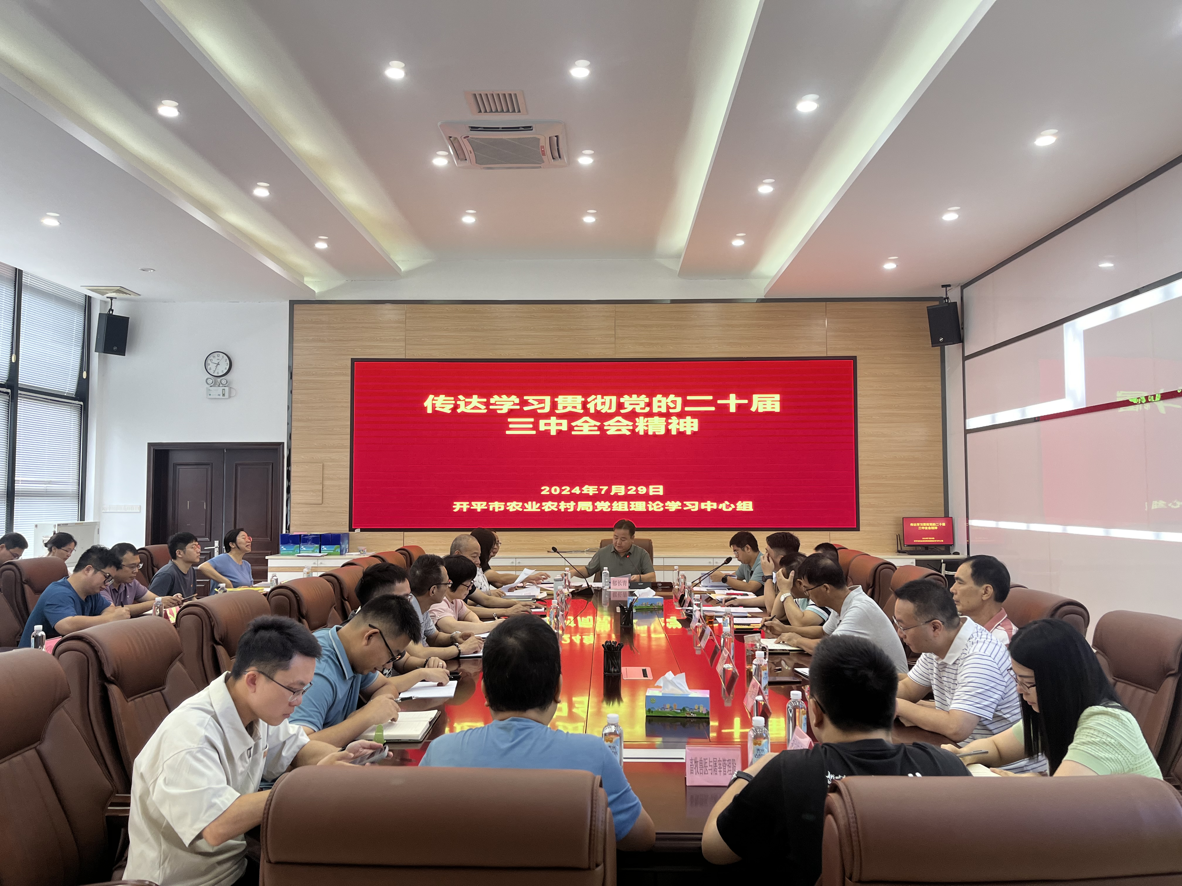 7月29日上午,海棠直播 农业农村局召开党组(扩大)会议,传达学习贯彻习近平总书记在党的二十届三中全会上的重要讲话精神和全会精神以及省委、江门市委、海棠直播 委有关会议精神,研究部署农业农村局系统贯彻落实意见。市农业农村局党组书记郁长青主持会议并讲话,全体班子成员、协管领导,各股室、事业单位负责人参会。