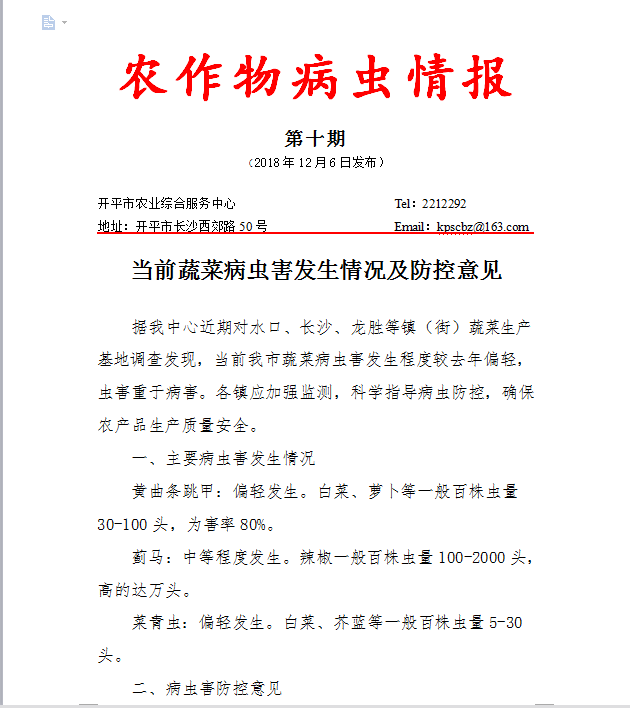 海棠直播 病虫情报2018年第10期(蔬菜)