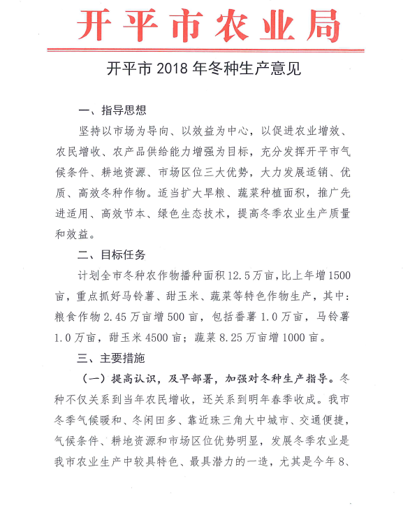 海棠直播 2018年冬种生产意见