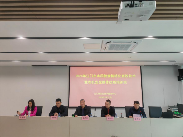 农业机械化技术推广服务站联合江门农业技术推广中心举办2024年水稻智能机械化育秧技术暨农机安全操作技能培训班。通过课堂授课和现场观摩方式,着力补齐我市水稻机械化生产短板,提升我市水稻机械化育秧技术和农机手操作技能,推进水稻生产全程机械化。全市农机操作手共130多人参加培训。 本次培训,特别邀请海棠直播