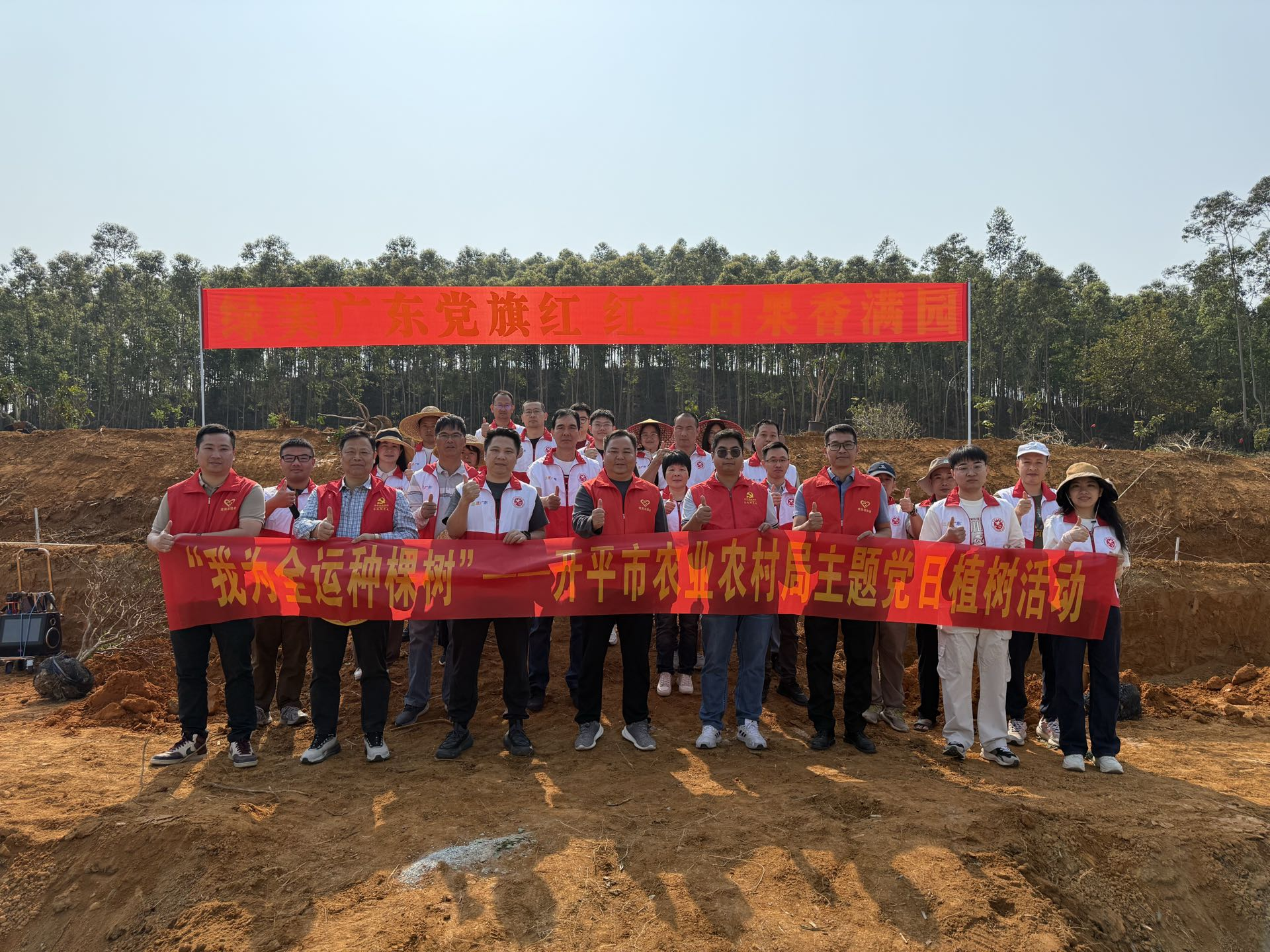 3月24日上午,海棠直播 农业农村局“我为全运种棵树”主题党日活动在马冈镇红丰村开展,局系统全体党员、青年干部等20余人参加。植树活动中,大家在专业人员的指导下,相互配合,一起挥锹填土、扶苗填坑、提水浇灌,共同栽种了100余棵果树。一排排整齐的树苗在春风中扎根土地、迎风而立,焕发出盎然生机。植树造林功在当代、利在千秋。接下来,海棠直播 农业农村局将继续深入落实绿美广东生态建设的决定,以实际行动践行社会责任和担当,为推进建设生态和谐美丽开平作出应有贡献。