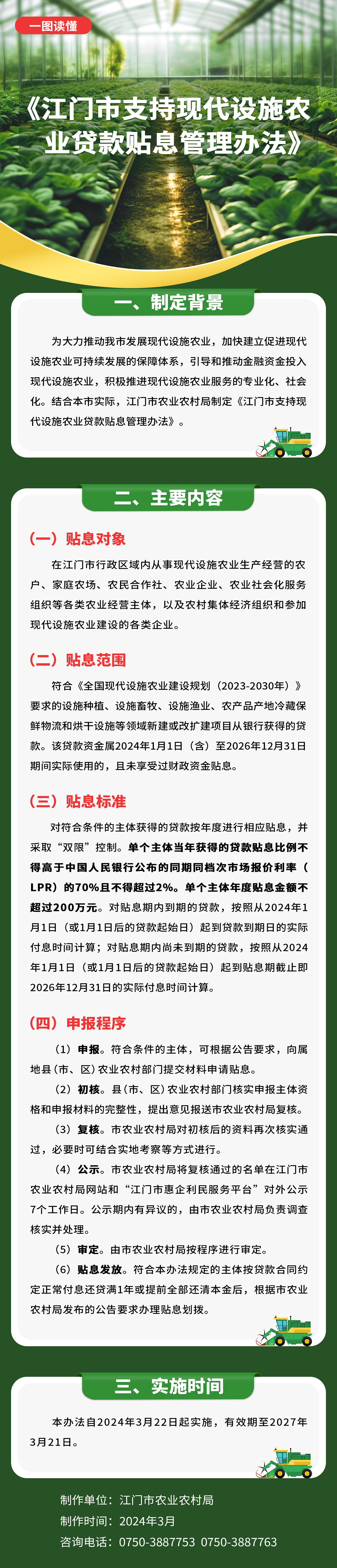 一图读懂《江门市支持现代设施农业贷款贴息管理办法》