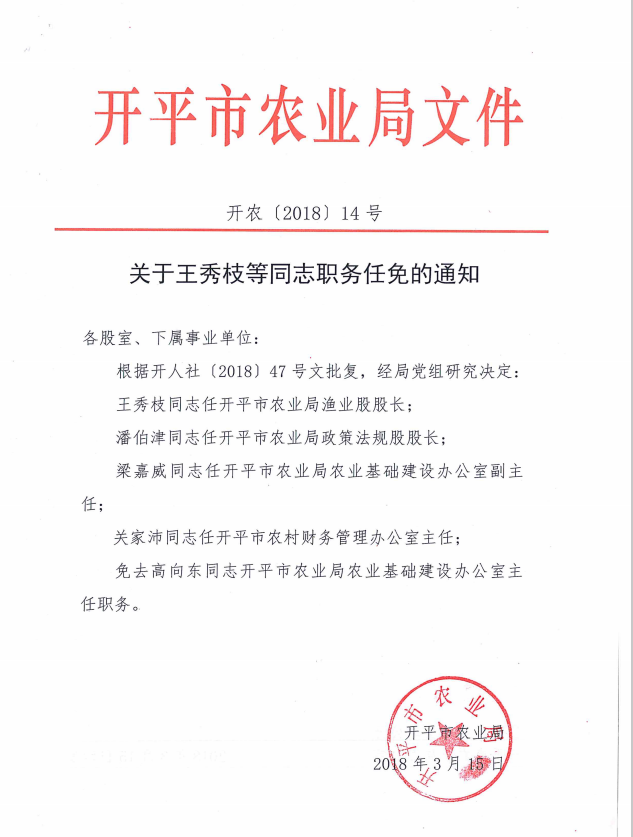关于王秀枝等通知职务任免的通知