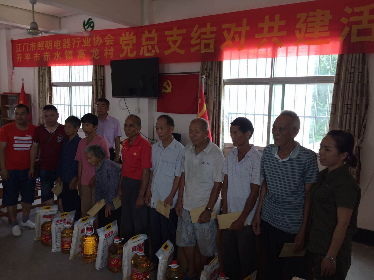 高龙水厂运行多年,因管道老化、缺乏养护经费,给群众用水带来了不便,为了帮助当地群众解决实际困难,慰问团一行深入到望天岭水库和高龙水厂,通过实地考察,拟制定帮扶共建项目。活动中,慰问团还对高龙村10户困难党员和困难群众进行了慰问,并为他们送上了慰问品和慰问金。江门市照明电器行业协会向高龙村的群众捐赠了上千盏LED节能灯。