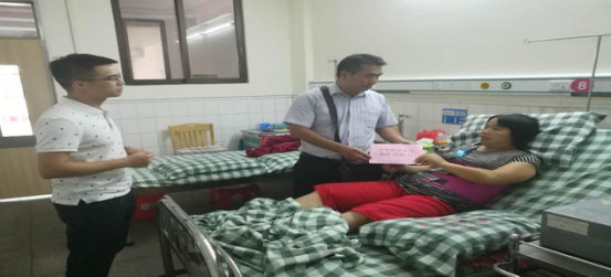 城管局局长罗健华等一行来到赤坎医院探望李碧琴,罗健华同志详细了解了李碧琴的恢复情况及其女儿的读书情况,鼓励她们坚定信心战胜暂时的困难并送上3225元助学济困捐款。