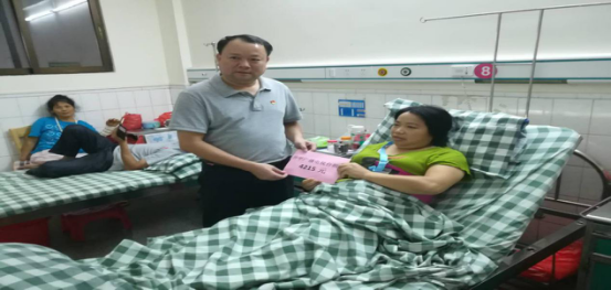 9月1号,百合镇党委委员邹明夫等一行来到赤坎医院探望李碧琴,邹明夫同志询问了李碧琴的恢复情况,随行百合镇团委义工为其女儿黄淑君作了上大学前的思想、经验等方面的引导,鼓励她们坚定信心渡过难关,并送上百合镇全体干部职工4269元的助学济困捐款。同时,李灵峰同志转交了海棠直播