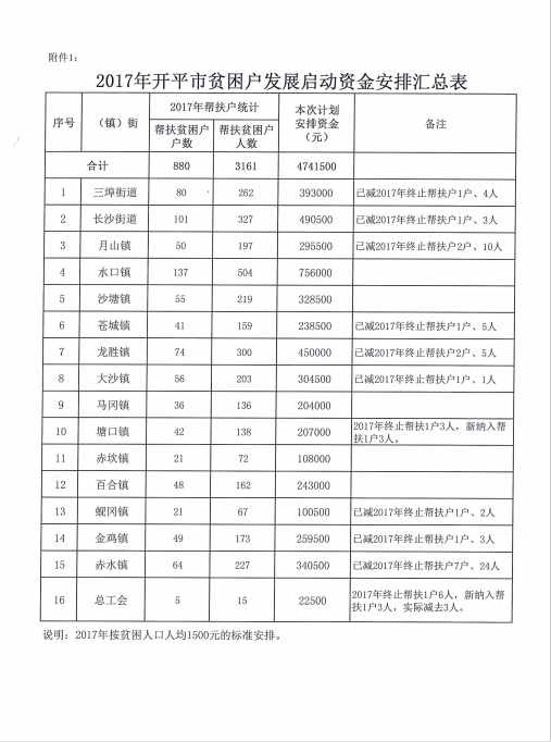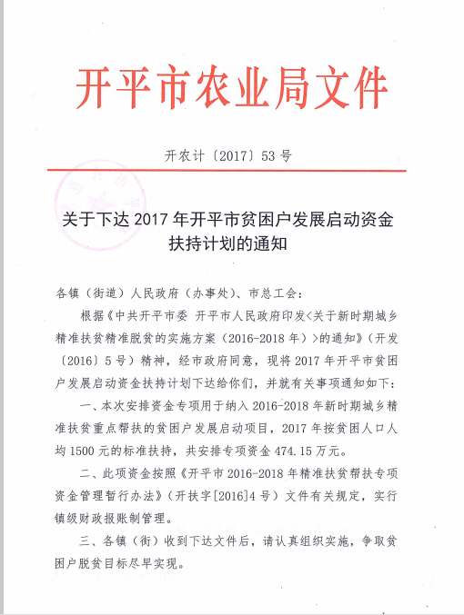 关于下达2017年海棠直播 贫困户发展启动资金扶持计划的通知